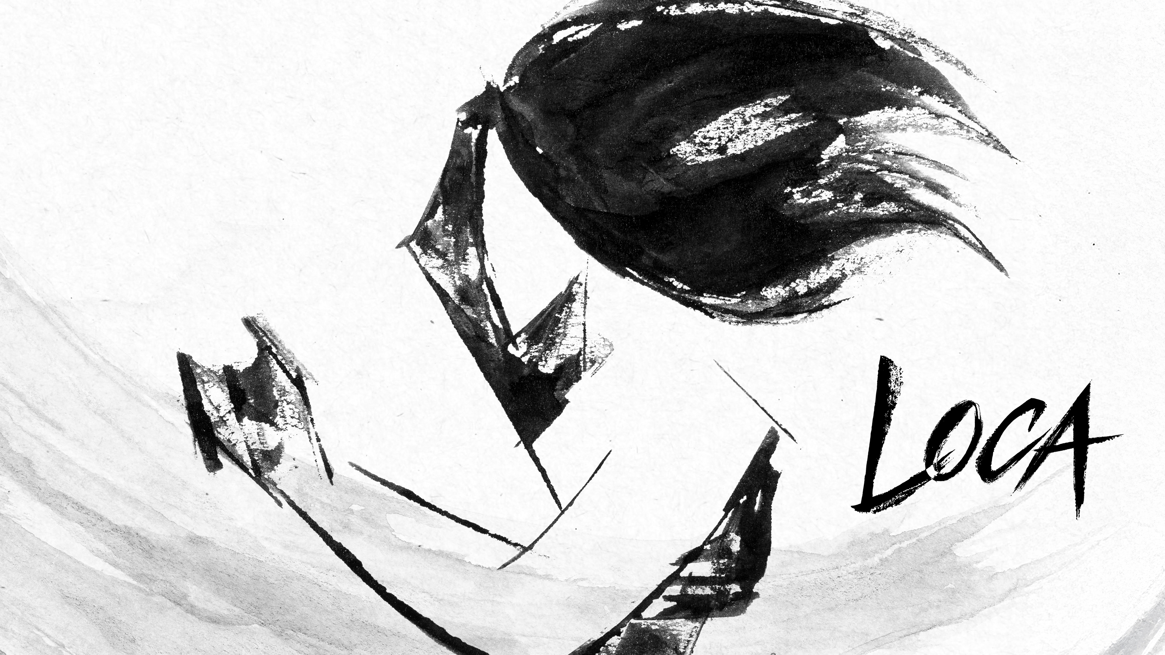 The spellbinding music sweeps the woman into a dance. As she whirls, a duo forms, their bodies intertwined in black and white. Their complete abandonment to the music is expressed in abundant waves of ink, creating a mesmerizing visual spectacle.
